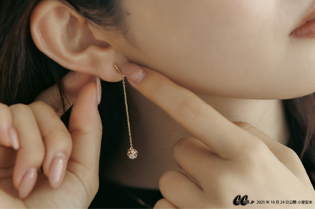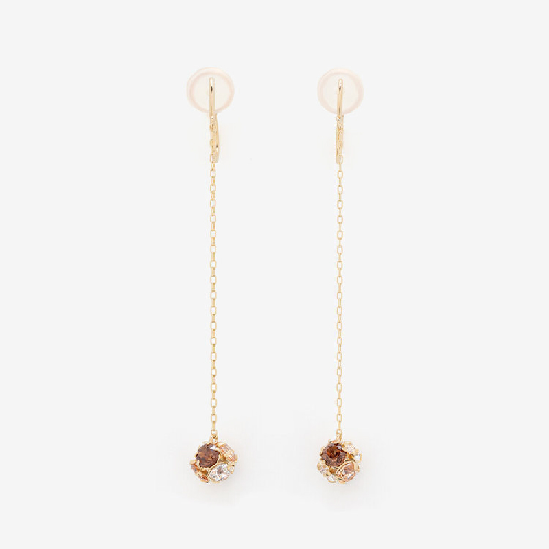 数色のストーンでかたどられたラウンド型のモチーフが、ころんと愛らしいフォルムのロンデルシリーズ。ウィンターコレクション限定カラーのシャンパン&ブラウンの淡いグラデーションは、オンオフ問わずに使える大人っぽさ。360度どこから見ても輝くストーンが、耳元で、胸元で品よくきらめく!